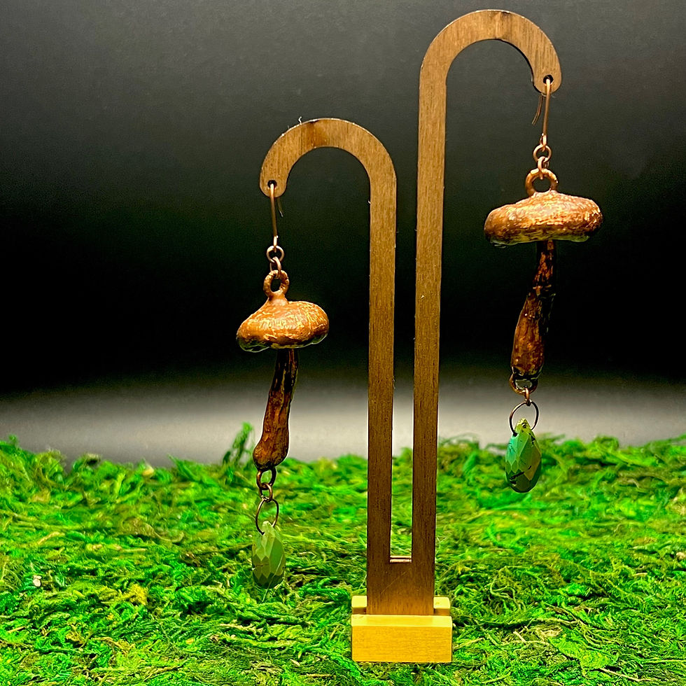 Why wear copper electroformed jewelry made out of plants and mushrooms? To connect to, celebrate and bask in the energy of the plant or mushroom of course! Copper is a conductive metal that has an amplifying affect. By immortalizing a plant or mushroom in copper, we magnify it's energy. Yes, the REAL plant or mushroom is still in there! Many of the plants and natural materials used have medicinal qualities and strong spirits. Adorning yourself with a plant or mushroom spirit can help you connect to that energy and spirit, and the natural world. May these adornments empower your connection with our beautiful, precious earth and it's many medicines...and may they be a living prayer for collective respect, love and harmony with nature.