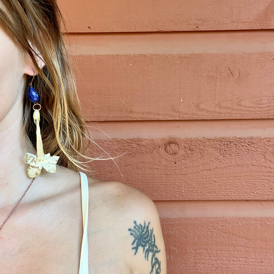 Pressed Jasmine Tobacco Flowers in resin with lapis lazuli earring